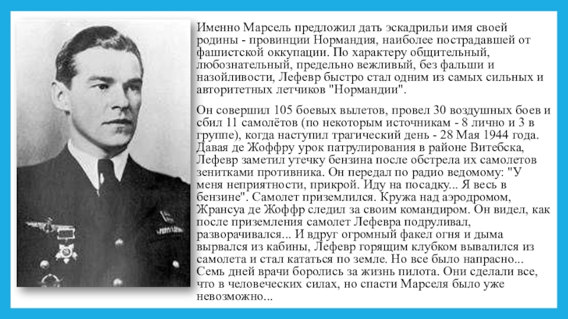 Слайд 11Именно Марсель предложил дать эскадрильи имя своей родины - провинции Нормандия,