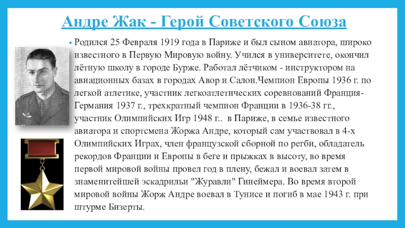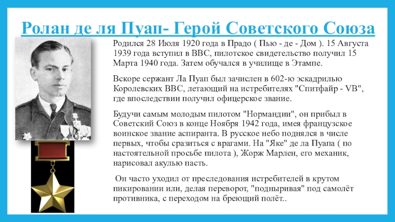 Слайд 8Ролан де ля Пуап- Герой Советского Союза