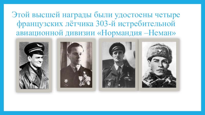 Слайд 5Этой высшей награды были удостоены четыре французских лётчика 303-й истребительной авиационной