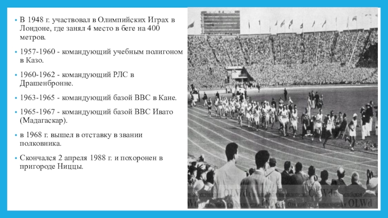 Слайд 16В 1948 г. участвовал в Олимпийских Играх в Лондоне, где занял