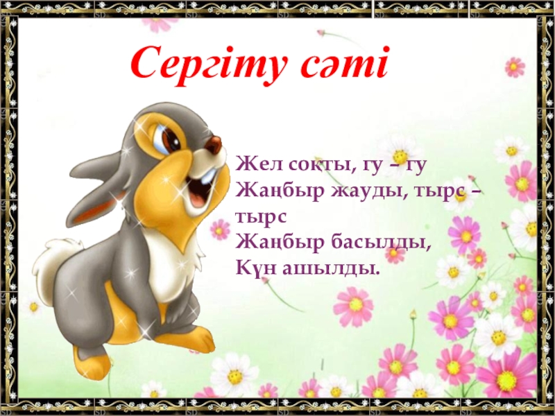 Сергіту сәтіЖел соқты, гу – гу Жаңбыр жауды, тырс – тырс Жаңбыр басылды,  Күн ашылды.