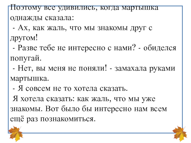 Слайд 9Поэтому все удивились, когда мартышка однажды сказала: