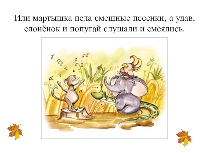 Или мартышка пела смешные песенки, а удав, слонёнок и попугай слушали