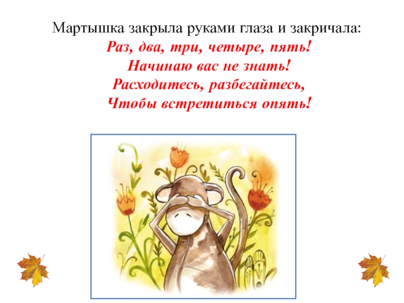 Слайд 14Когда мартышка открыла глаза, никого не было. Потом из-за дерева вышел