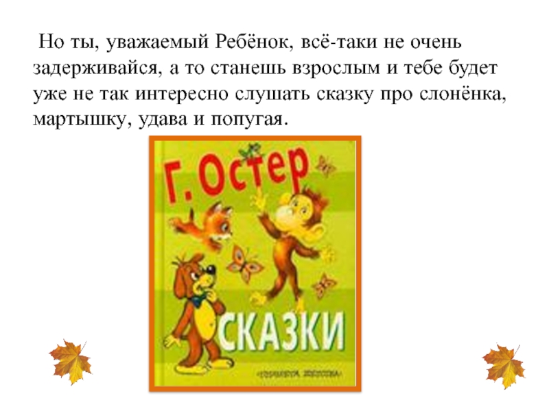 Слайд 3 Но ты, уважаемый Ребёнок, всё-таки не очень задерживайся, а то