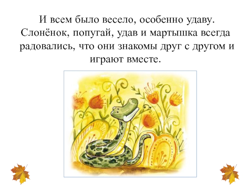 Слайд 8 И всем было весело, особенно удаву. Слонёнок, попугай, удав и