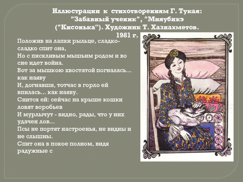 Положив на лапки рыльце, сладко-сладко спит она,