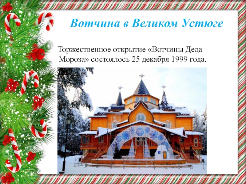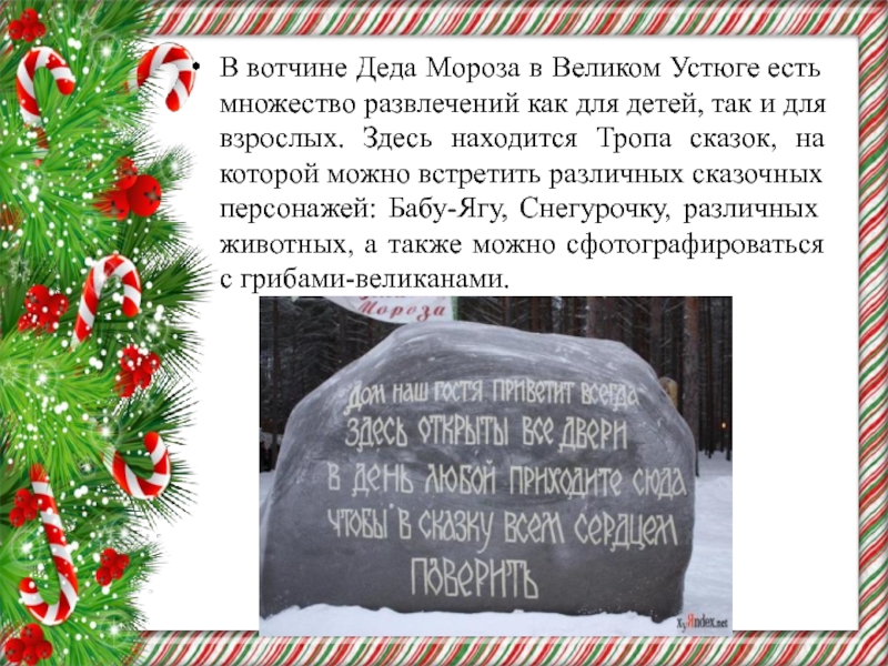 Слайд 30В вотчине Деда Мороза в Великом Устюге есть множество развлечений как для детей,