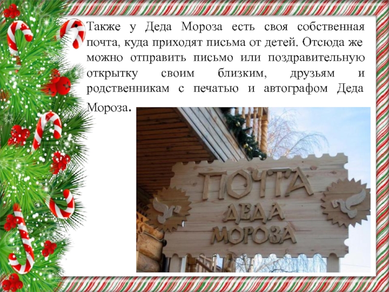 Слайд 28Также у Деда Мороза есть своя собственная почта, куда приходят письма