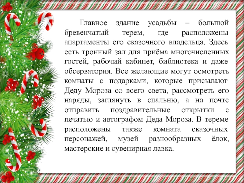 Слайд 10 Деду Морозу нужна большая территория, чтобы разместить все необходимые