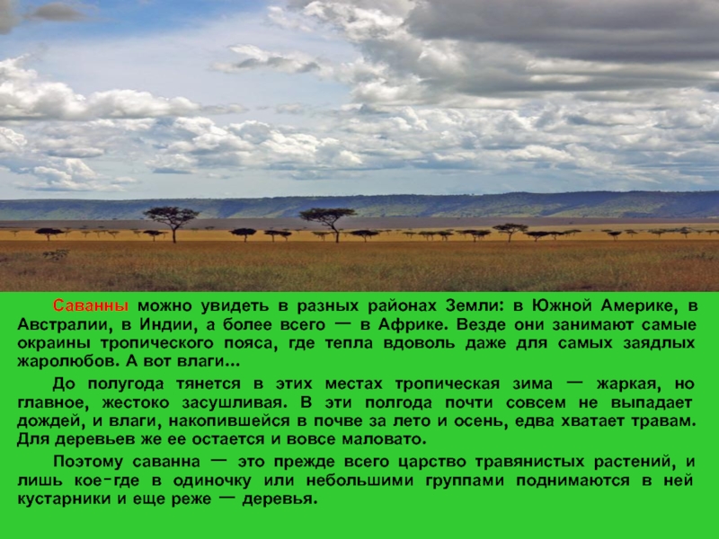 Саванны можно увидеть в разных районах Земли: в Южной Америке, в