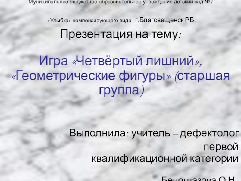 Игра «Четвёртый лишний», «Геометрические фигуры» (старшая группа)