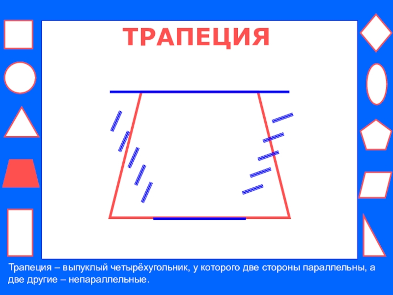 ТРАПЕЦИЯТрапеция – выпуклый четырёхугольник, у которого две стороны параллельны, а две другие – непараллельные.