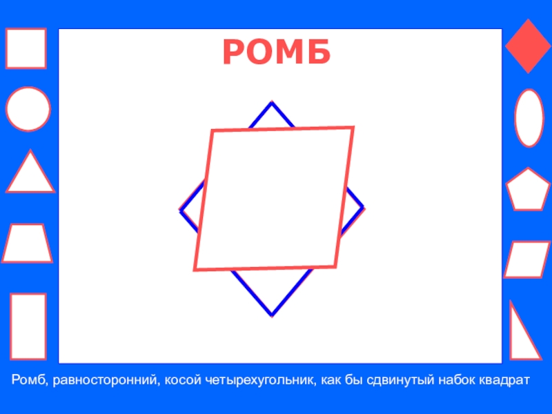 Ромб, равносторонний, косой четырехугольник, как бы сдвинутый набок квадрат