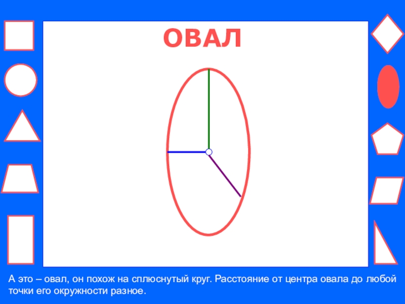 ОВАЛА это – овал, он похож на сплюснутый круг. Расстояние от центра овала до любой точки его