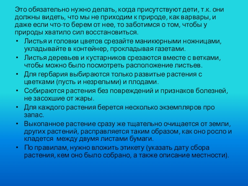 Правила сбора растений