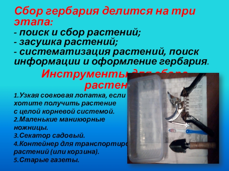 Сбор гербария делится на три этапа:
