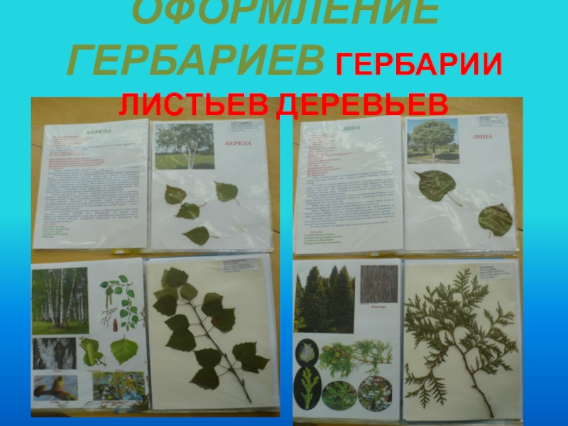Слайд 19ОФОРМЛЕНИЕ ГЕРБАРИЕВ ГЕРБАРИИ ЛИСТЬЕВ ДЕРЕВЬЕВ
