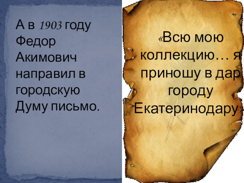 «Всю мою коллекцию… я приношу в дар городу Екатеринодару».