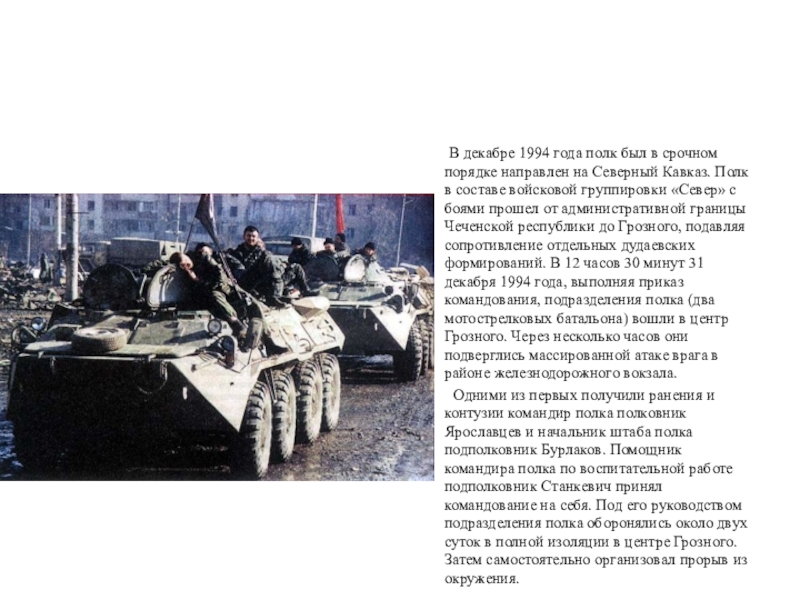 В декабре 1994 года полк был в срочном порядке направлен на Северный