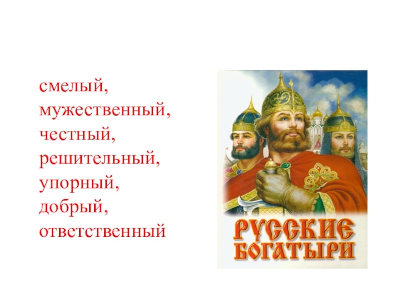 Слайд 12 смелый, мужественный, честный, решительный, упорный, добрый, ответственный