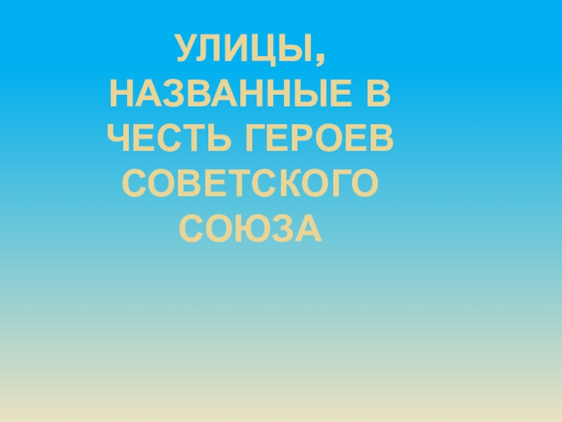 Слайд 14УЛИЦЫ, НАЗВАННЫЕ В ЧЕСТЬ ГЕРОЕВ СОВЕТСКОГО СОЮЗА