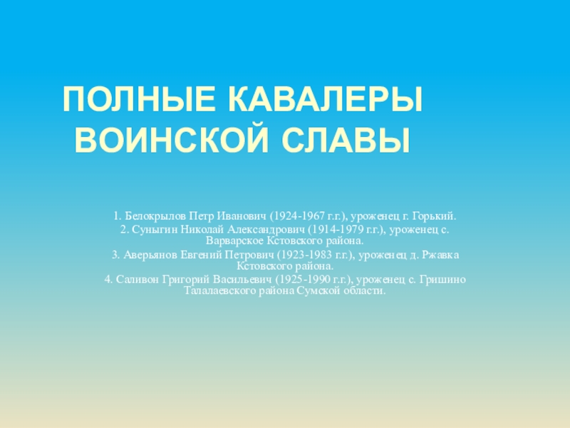 Слайд 9ПОЛНЫЕ КАВАЛЕРЫ ВОИНСКОЙ СЛАВЫ