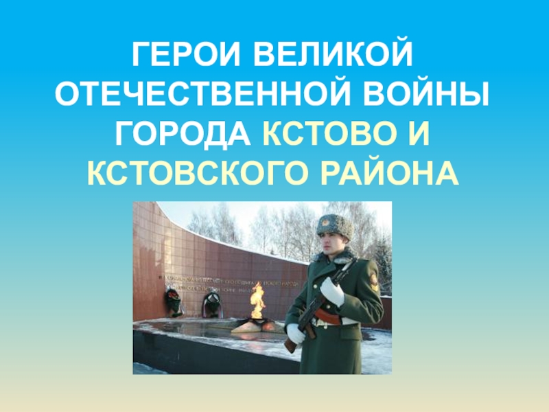 Слайд 1ГЕРОИ ВЕЛИКОЙ ОТЕЧЕСТВЕННОЙ ВОЙНЫ ГОРОДА КСТОВО И КСТОВСКОГО РАЙОНА