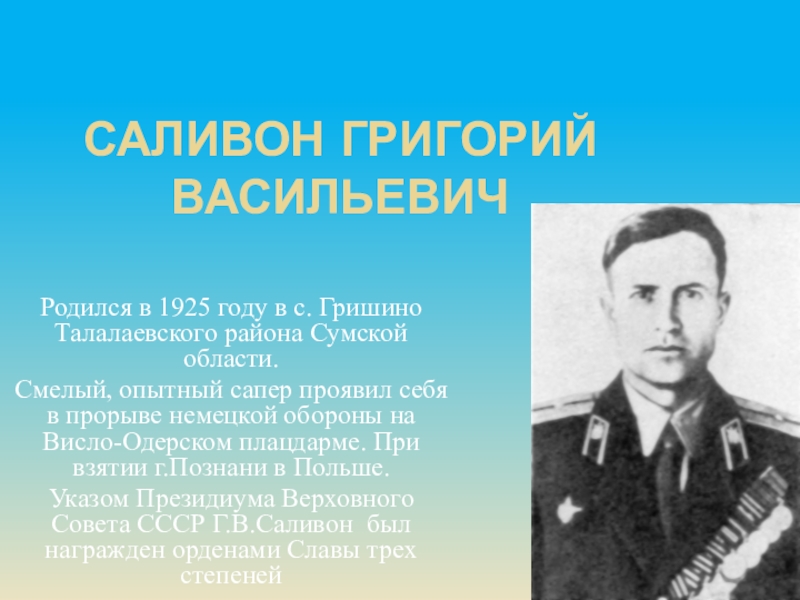 Слайд 13САЛИВОН ГРИГОРИЙ ВАСИЛЬЕВИЧ