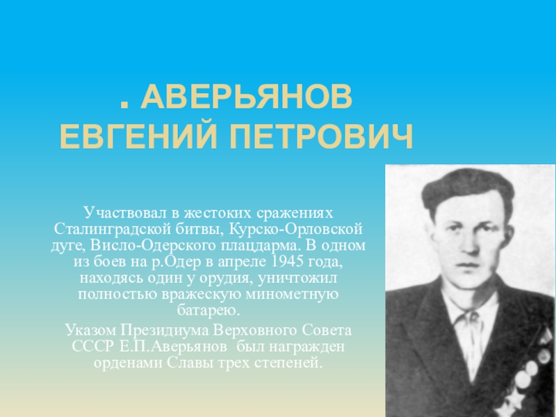 Слайд 12. АВЕРЬЯНОВ ЕВГЕНИЙ ПЕТРОВИЧ