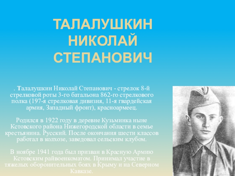 Слайд 16ТАЛАЛУШКИН НИКОЛАЙ СТЕПАНОВИЧ