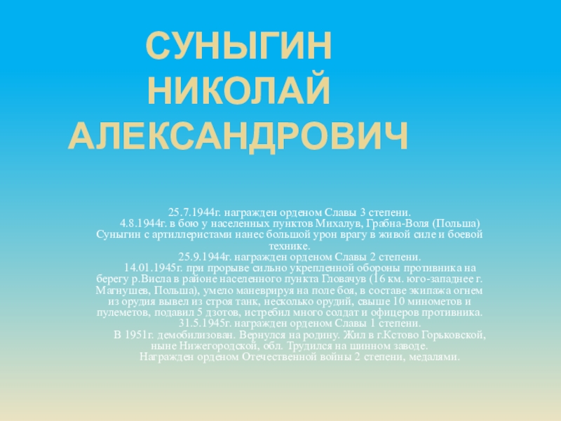Слайд 11СУНЫГИН НИКОЛАЙ АЛЕКСАНДРОВИЧ