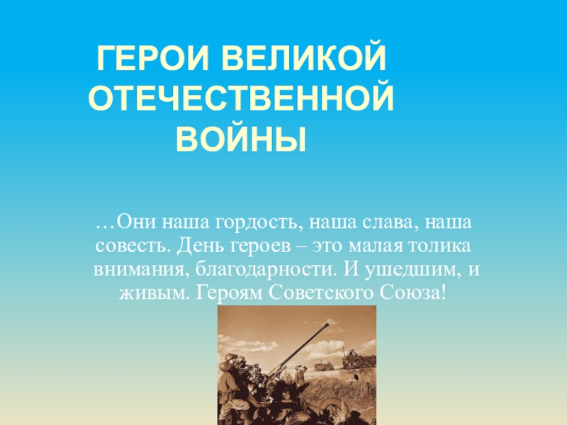 Слайд 4ГЕРОИ ВЕЛИКОЙ ОТЕЧЕСТВЕННОЙ ВОЙНЫ