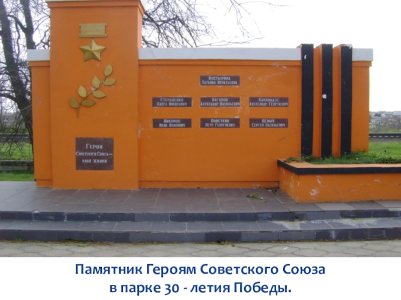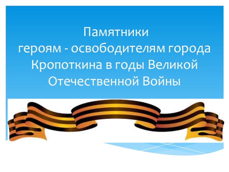 Слайд 1 Памятники героям - освободителям города Кропоткина в годы Великой Отечественной