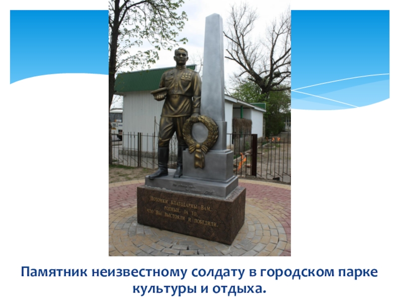 Слайд 15Памятник неизвестному солдату в городском парке культуры и отдыха.