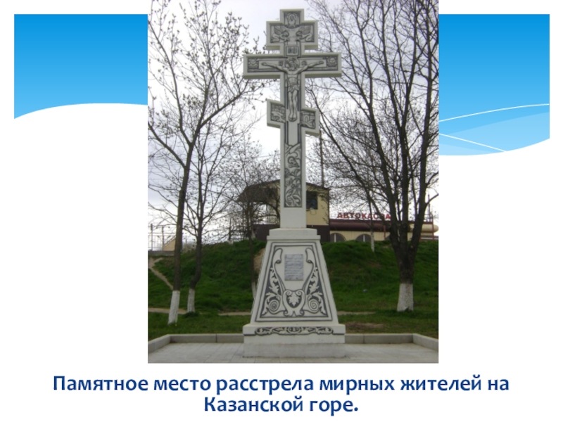 Слайд 13Памятное место расстрела мирных жителей на Казанской горе.