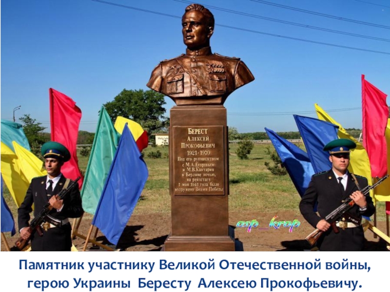 Слайд 17Памятник участнику Великой Отечественной войны, герою Украины Бересту Алексею Прокофьевичу.