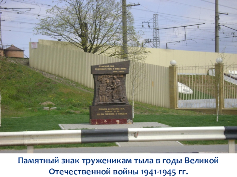 Слайд 7Памятный знак труженикам тыла в годы Великой Отечественной войны 1941-1945 гг.