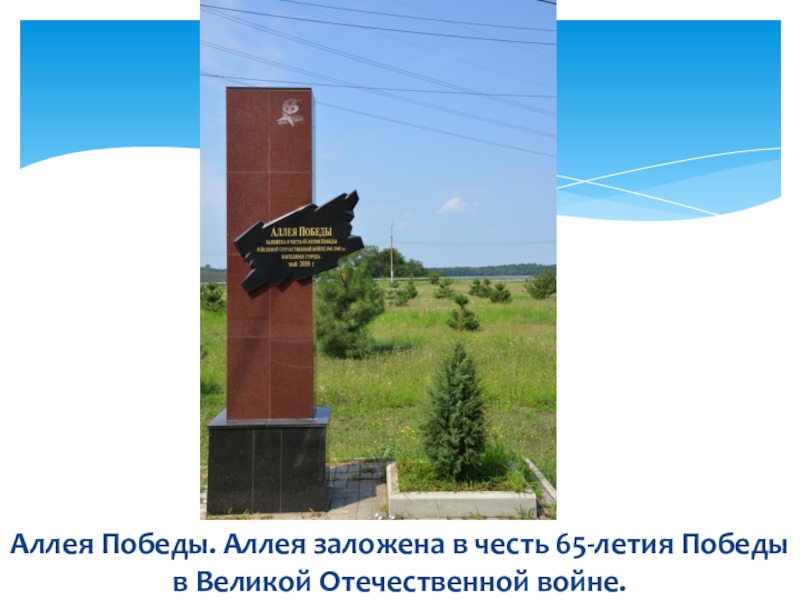 Слайд 16Аллея Победы. Аллея заложена в честь 65-летия Победы в Великой Отечественной