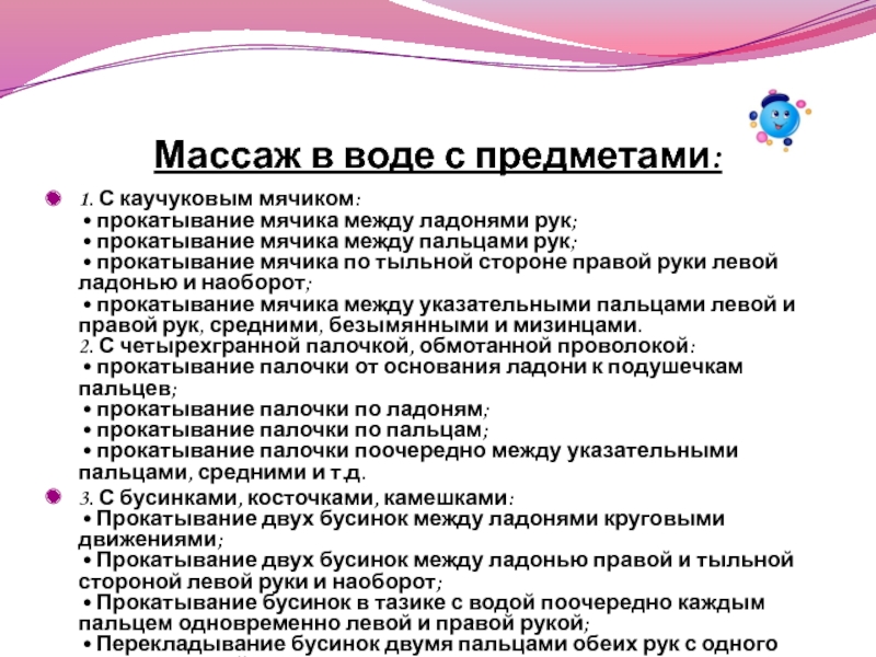Слайд 20Массаж в воде с предметами: