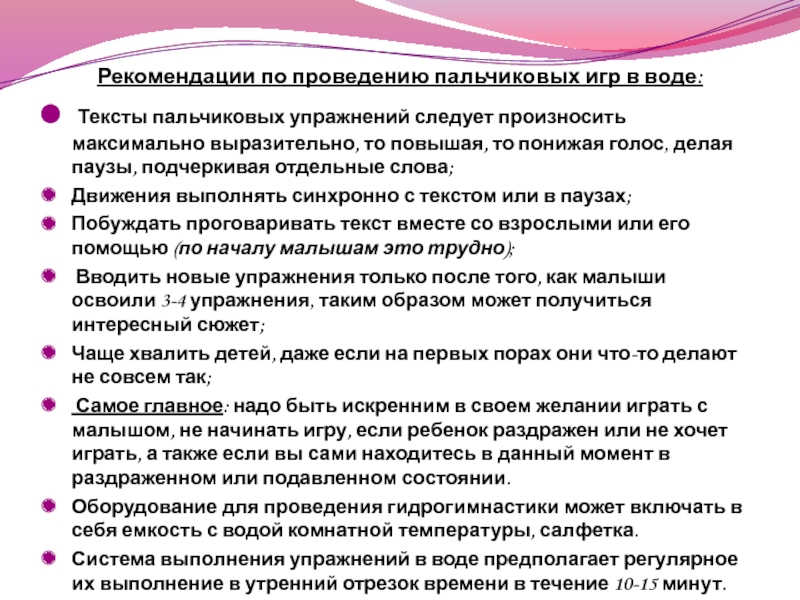 Рекомендации по проведению пальчиковых игр в воде: