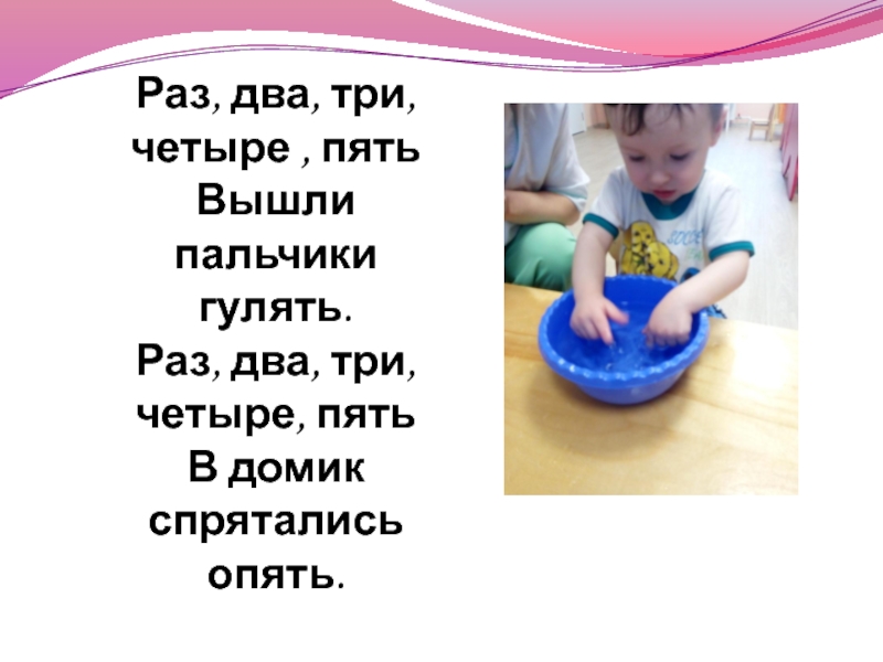 2. Игры с пальчиками в воде создают благоприятный эмоциональный фон, развивают умение подражать взрослому, учат понимать смысл речи. Повышают речевую активность ребёнка.