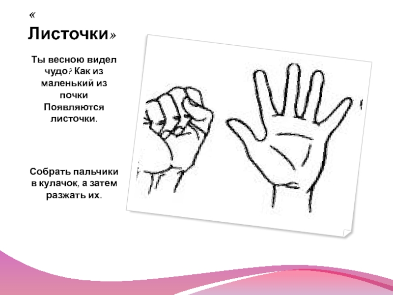 Собрать пальчики в кулачок, а затем разжать их.