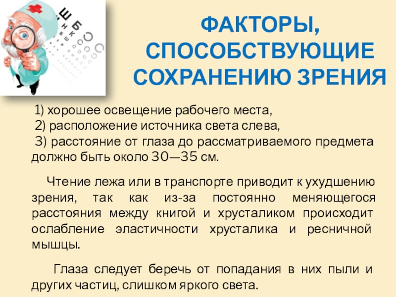 Факторы, способствующие сохранению зрения
