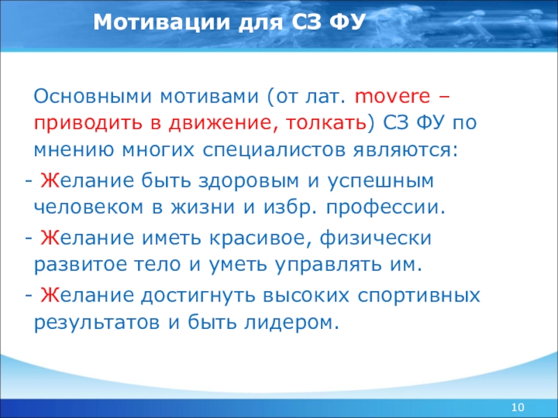 Слайд 10Основными мотивами (от лат. movere – приводить в движение, толкать) СЗ