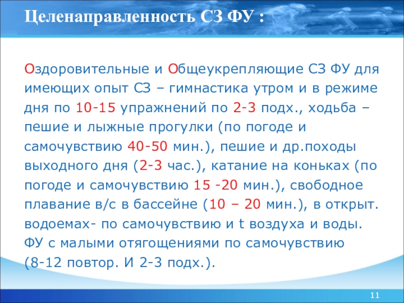 Слайд 11Оздоровительные и Общеукрепляющие СЗ ФУ для имеющих опыт СЗ – гимнастика