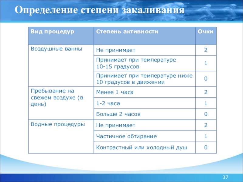 - Естественные целебные свойства природы (солнце, воздух, вода) – организованные мероприятия ( ДОУ, школы, техникумы, Вузы) и самостоятельные занятия (планируемые и спонтанные действия) .