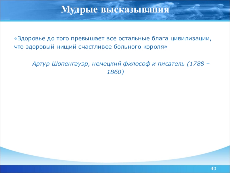 «Здоровье до того превышает все остальные блага цивилизации, что здоровый