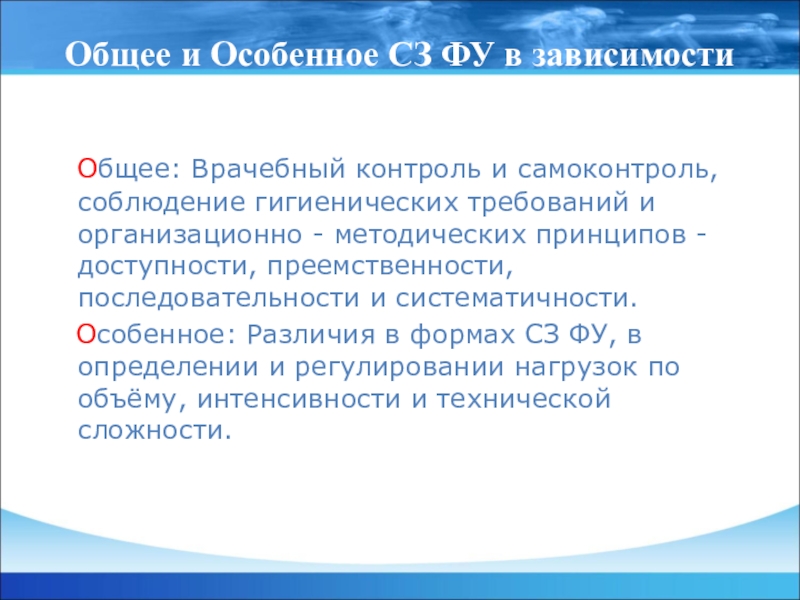 Особенное: Различия в формах СЗ ФУ, в определении и регулировании нагрузок по объёму, интенсивности и технической сложности.