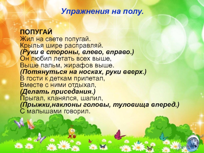 Слайд 17Упражнения на полу.